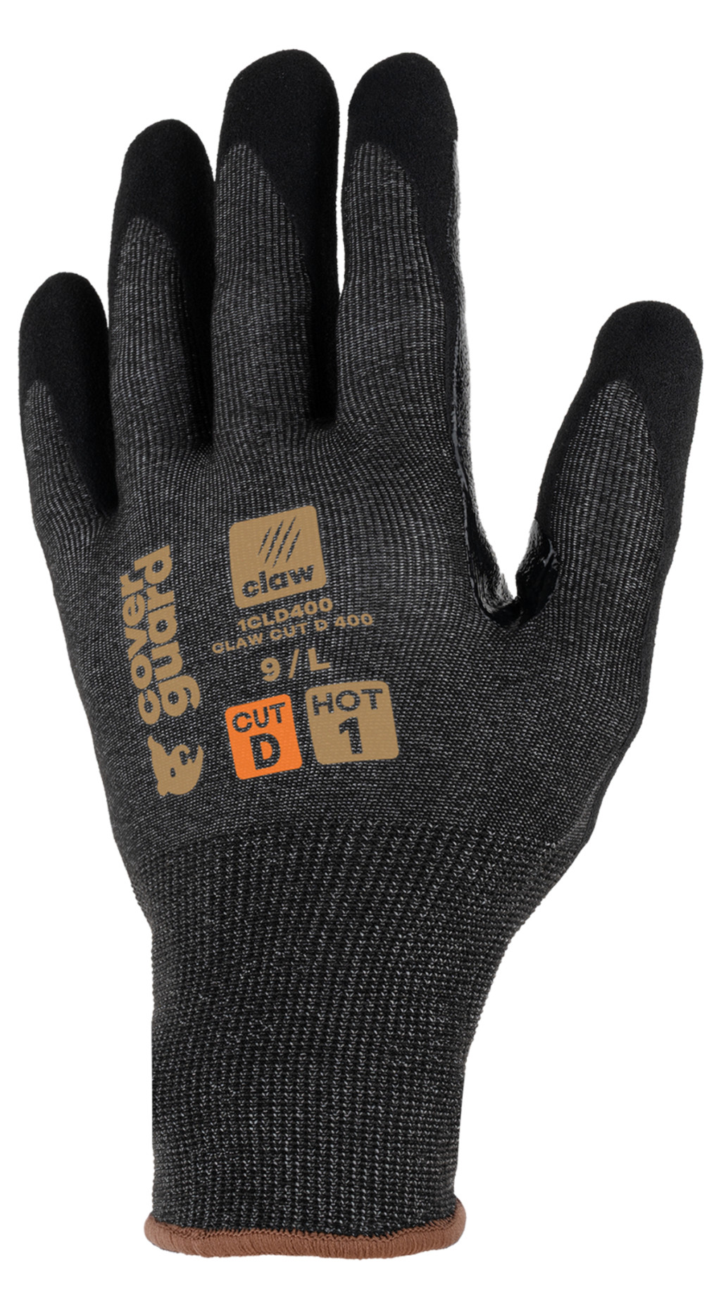 A CLAW CUT termékcsalád egy új generációs vágásálló kesztyű, amelyet arra terveztek, hogy megvédjen a legigényesebb munkák során, magas vágásállósággal (CUT D-től A9-ig), és kiváló komfortot, valamint kivételes ügyességet biztosítson minden munkakörnyezetben (száraz, nedves és olajos).A CLAW CUT D 400 modellt finom anyagmozgatási munkákhoz tervezték száraz és enyhén olajos környezetben. A magas 21-es kötés, amely egy rendkívül puha és erős üvegszál, poliészter és spandex alapú anyagból készült, második bőr érzést biztosít, miközben kiváló vágásvédelmet nyújt (CUT D).A sandy nitril bevonat és a hosszú megerősítés a hüvelykujj és a mutatóujj között kiváló tapadást és jó fogást biztosít. Ez a bevonat nagyon jó légáteresztőséget garantál (COVERPERF címkével tesztelve), valamint nagy kopásállóságot is (COVERPERF címke: >20.000 ciklus). A CLAW CUT D 400 újrahasznosított poliészterből készült, és RCS tanúsítvánnyal rendelkezik (a termék teljes súlyának 20%-a). Üvegszál nélkül.Ez a kesztyű érintőképernyő kompatibilis, így viselése közben is használhatja a kijelzővel rendelkező berendezéseket. A Sanitized kezelés megakadályozza a baktériumok és szagok fejlődését, és a CLAW CUT D 400 hypoallergén is (COVERPERF SKINCARE teszt).