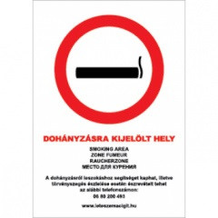 DOHÁNYZÁSRA KIJELÖLT HELY (5 NYELVŰ, 39/2013. (II. 14.) Korm. rend.), vinil öntapadó, 210x300