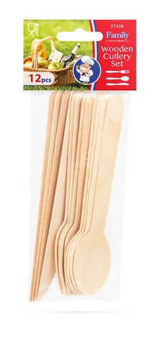 Fa evőeszköz készlet - 12 db (4 villa,4 kanál, 4 kés)