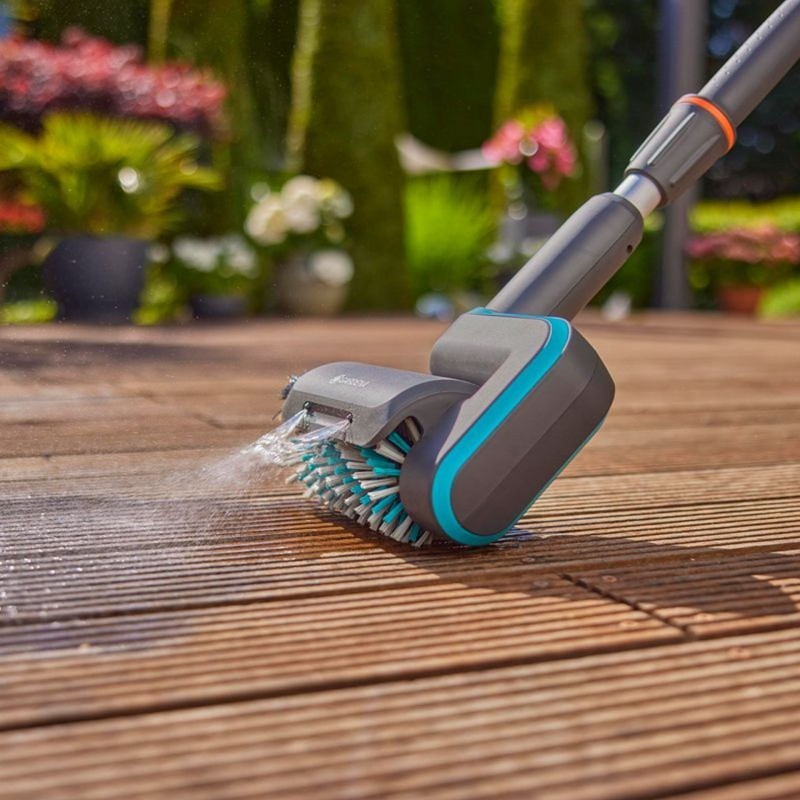 A Gardena a kültéri tisztítószerek piacán széles és strukturált termékválasztékot kínál, amely 360 fokos szolgáltatást nyújt! A Gardena AquaBrush Universal 04/18V P4A akkumulátoros multifunkciós tisztító az egyik legátfogóbb és legsokoldalúbb termék, amely az ablakok, pergolák, kényes felületek, valamint a kültéri sétányok, utak, medenceszélek és lépcsők tisztítására irányul. 2 darabból áll, amelyek különböző kültéri tisztítási igényeket elégítenek ki a viszonylag nagy felületeken lerakódott szennyeződések vízsugárral történő eltávolításával: Aquabrush Patio 03/18V P4A Universal hengerkefe, padlóhoz és a puha tárcsás kefe ablakokhoz és kényes felületekhez. Biztosítja a teljes felület egyenletes, sérülésmentes tisztítását; a puha tárcsás kefe kiválóan alkalmas ablakok, pergolák és függőleges felületek tisztítására. A kialakítás könnyű és jól kiegyensúlyozott, a teleszkópos nyél 1330 és 1364 mm közötti tartományban mozog , így a legjobb pozícióban dolgozhat fáradtság nélkül és anélkül, hogy meglehetősen kihívást jelentő magasságokat érne el. A víztömlővel való rögzítés egyszerű és gyors , a nyél alatti pozíció soha nem zavarja a munkát; a hengerkefét körülvevő nehéz műanyag borítás megakadályozza és megvédi a kezelőt a fröccsenéstől. Az elülső fogantyú lehetővé teszi a kefe működtetését használat közben , míg a funkcióvezérlők a fő fogantyún találhatók; a vezérlőszelep biztosítja a vízfogyasztás folyamatos szabályozását a szennyeződésre való hatás igényének megfelelően. Műszaki adatok: • Állítható sebesség: Igen • LED-es akkumulátor töltöttségjelző: Igen • Első fogantyú egyedileg állítható: Igen • Használat: Különböző felületek hatékony tisztításához • Teljes hossz: 1 330–1 364 mm • Kerti tömlőhöz való gyorscsatlakozóval használható: Igen A csomag tartalma: • Univerzális hengerkefe • Szilikon akkufedél • Puha tárcsás kefe Akkufeszültség 18 V Akku nélkül