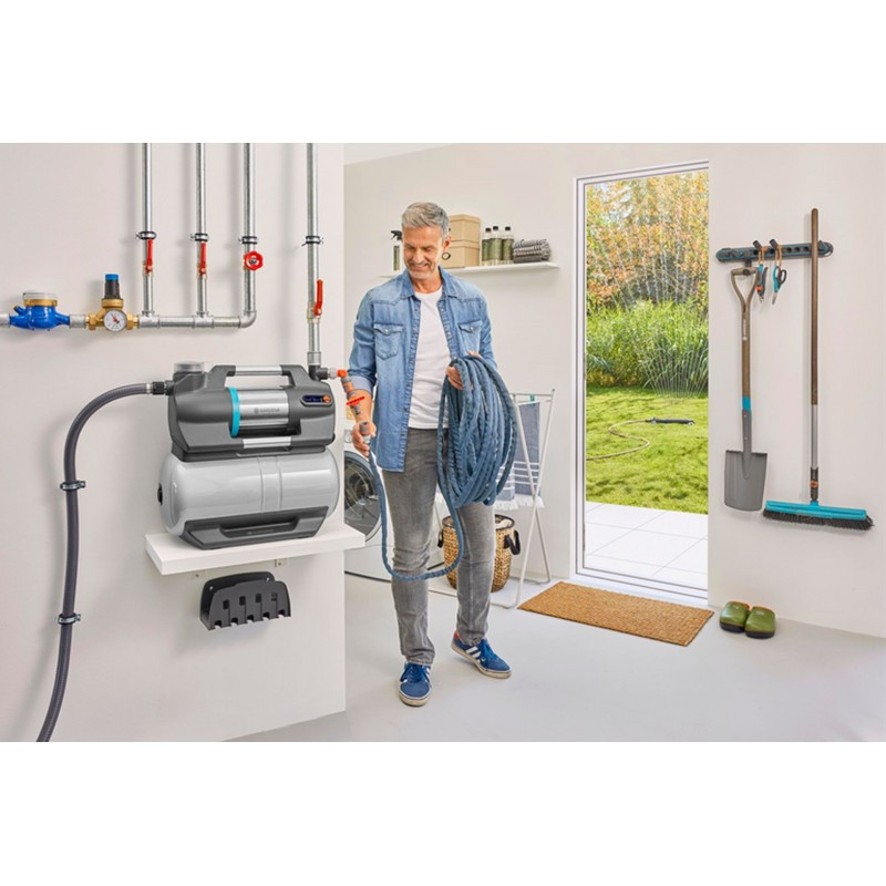 A Gardena 5600 SilentComfort automata szivattyúállomás egy 900 W teljesítményű, 25 literes hidraulikatartállyal, 4,7 bar-os és 5600 l/h-s vízellátáshoz ideális megoldás egy 900W-os felületi háztartási szivattyú prémium modellje, otthon és a kertben. A Gardena 5600 SilentComfort automata szivattyúállomás alacsony zajszinttel, okostelefon csatlakoztatásával és vezérlésével, automatikus be- és kikapcsolás funkcióval, Power Boost funkcióval a kerti erőteljes öntözéshez, kerámia tömítőrendszerrel kettős tömítéssel, szárazság elleni védelemmel rendelkezik. futás és túlmelegedés. , a tengely edzett rozsdamentes acélból készült, ezt 5 év gyártói garancia indokolja. A készülék háttérvilágítású LCD-kijelzőjén keresztül hasznos funkciókat állíthat be, illetve elindíthatja vagy leállíthatja. A szivattyút Bluetooth-on keresztül okostelefonról vagy táblagépről is vezérelheti, a GARDENA Bluetooth alkalmazás segítségével pedig akár 10 méterről távolról is vezérelheti. A további funkciók közé tartozik az öntözési ütemezés akkor is, ha Ön nincs otthon, időzítő beállítása, az aktuális tápnyomás figyelése vagy a be- és kikapcsolási nyomás beállítása az egyéni igényeknek megfelelően. A beépített finomhálós szűrő hosszú élettartamot biztosít. A szűrő megakadályozza, hogy szennyeződés részecskék kerüljenek az energiatakarékos szivattyúba vagy annak tartozékaiba. A pumpa emlékezteti, hogy kérésre tisztítsa meg a szűrőt, az alkalmazás pedig 28 nyelven elérhető, világos, lépésről lépésre szóló utasításokkal végigvezeti Önt az első indításon. A GARDENA talajnedvesség-érzékelő csatlakozási lehetőségének köszönhetően ideális vízellátás garantált növényei számára az előre programozott ütemezések során, és megakadályozza a vízpazarlást, mivel az öntözési ütemtervek kihagyásra kerülnek, ha a talaj túl nedves. A szivattyú 25 literes víztartályában egy nagy teljesítményű membrán található, ami azt jelenti, hogy a tartály legalább 5 évig nem igényel karbantartást. Nincs szükség a levegő utánpótlására vagy a membrán cseréjére a tartályban. A szivattyú és a tartály közötti integrált tengelykapcsoló rozsdamentes acélból készült. Jellemzők: • Teljesítmény: 900 W • Max. szállított vízmennyiség: 5600 l/h • Max nyomás: 4,7 bar • Max. önfelszívás: 8 m • Max. szállítási magasság head: 49 m • Folyadék max. hőmérséklete: 35 °C • Kábel hossza: 1,5 m • Tápkábel típusa: H07 RNF • Elektromos védelmi osztály: IP X4 Tartály térfogata 25 l Csatlakozó (szívó) 1" x 1/2"