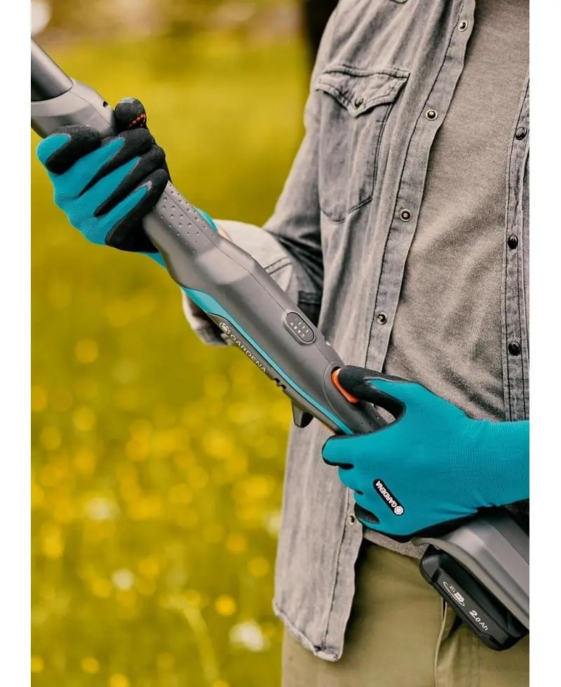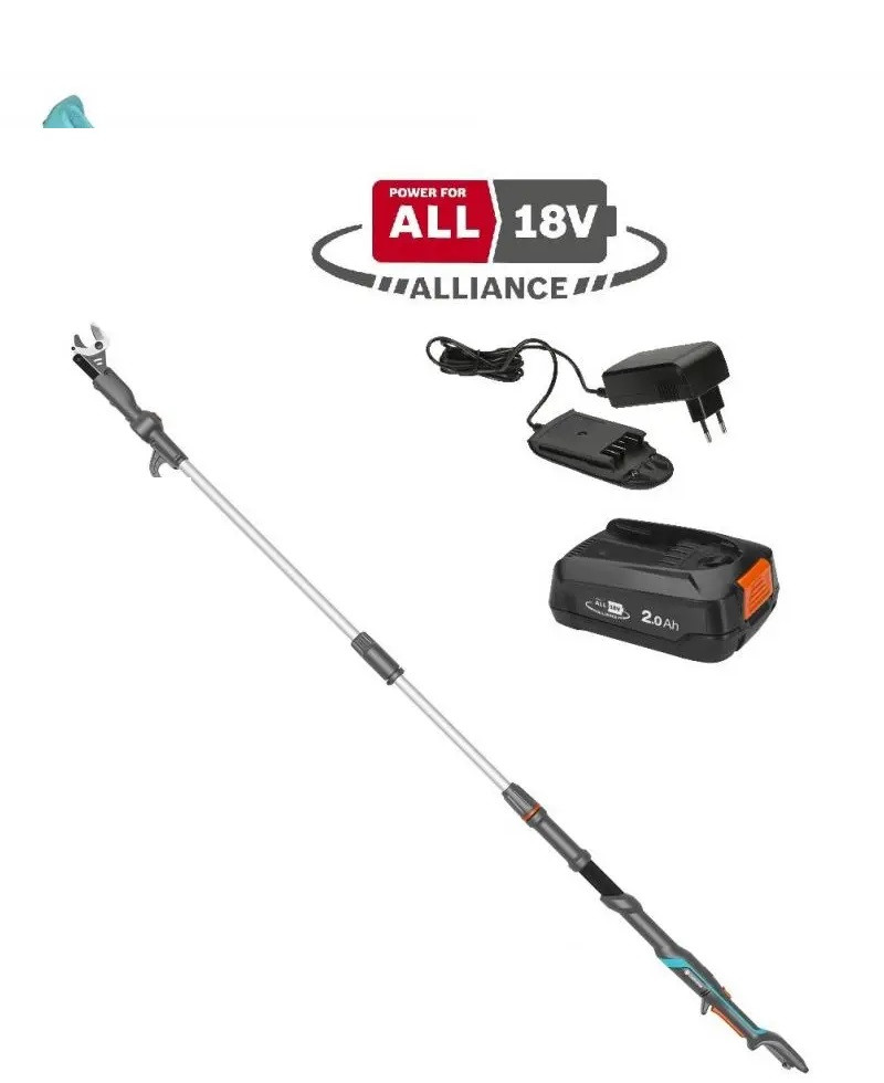 A GARDENA HighCut 250/18V P4A akkumulátoros teleszkópos ágvágó olló használatra kész készlet nagy magasságban is megkönnyíti a földről történő metszést. Az ágvágó olló akár 2,5 méter hosszúságot is elérhet, így a teljes magassága metszéskor akár 4 méter is lehet. A levehető tengelynek köszönhetően a HighCut könnyen szállítható és tárolható. A POWER FOR ALL akkumulátor könnyű vágást tesz lehetővé, nagy erő igénybevétele nélkül. Az eredeti GARDENA kések Németországban készülnek edzett acélból, és tiszta, sima vágást biztosítanak a nyers fában 28 mm átmérőig. A tapadásmentes bevonatnak és precíz csiszolásnak köszönhetően a vágási hulladék nem tapad a késhez. Használd a forgatható, keskeny vágófejet az egyes ágak 60 fokban történő vágásához. Ezenkívül a forgatható fej jó rálátást biztosít a vágásra. Ha az ágak fennakadnak a fán, egyszerűen lehúzhatod őket a nyél tetején lévő kampóval. Az ergonomikus nyélbe épített LED-kijelző mutatja az akkumulátor aktuális töltöttségét. Akár 400 vágás is lehetséges egy teljes 2,0 Ah-s akkumulátortöltéssel. A GARDENA HighCut 250/18V P4A akkumulátoros teleszkópos ágvágó olló használatra kész készlet gyorstöltővel és 18 V-os POWER FOR ALL akkumulátorral kerül forgalomba. A POWER FOR ALL ALLIANCE a vezető akkumulátorgyártók egyik legnagyobb márkafüggetlen szövetsége, amelynek akkumulátorai számos kerti és háztartási eszközben használhatók. Így pénzt takaríthatsz meg, miközben rugalmas maradsz! Egy egyszerű online regisztrációt követően a GARDENA három év gyártói szavatosságot vállal az akkumulátoros, teleszkópos ágvágó ollóra. Szenvedély a GARDENA-val EGYETLEN akkumulátorrendszer a kertben végzett összes feladathoz. Maximális vágható átmérő 28 mm Max vágási magasság 2557 mm Akkumulátor feszültsége 18 V