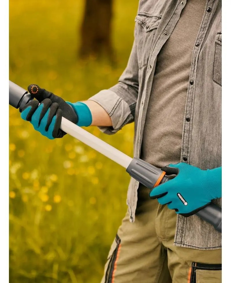 A GARDENA HighCut 360/18V P4A akkumulátoros teleszkópos ágvágó olló segítségével könnyedén metszhetsz a földről, nagyon nagy magasságban. A beépített hosszabbítónak köszönhetően az ágvágó olló hossza akár 3,6 méter is lehet, így metszés közben akár 5 méteres teljes magasságig is elérhetsz. A praktikus teleszkópos funkció lehetővé teszi, hogy rugalmasan alkalmazkodj a körülményekhez. A HighCut nyele levehető, ezért szállítása és tárolása egyszerű. A POWER FOR ALL akkumulátor biztosítja, hogy a vágások könnyen, nagy erő nélkül történjenek. Az eredeti GARDENA kések Németországban készülnek edzett acélból, és tiszta, sima vágást biztosítanak a nyers fában 28 mm átmérőig. A tapadásmentes bevonatnak és precíz csiszolásnak köszönhetően a vágási hulladék nem tapad a késhez. Használd a forgatható és karcsú vágófejet az egyes ágak 60 fokban történő vágásához. Ezenkívül a ferde fej jó rálátást biztosít. Ha az ágak fennakadnak a fán, egyszerűen lehúzhatod őket a nyél tetején lévő kampóval. Az ergonomikus nyélbe épített LED-kijelző mutatja az akkumulátor aktuális töltöttségét. A GARDENA HighCut 360/18V P4A akkumulátoros, teleszkópos ágvágó olló gyorstöltő és nagy teljesítményű 18V POWER FOR ALL akkumulátor nélkül kerül forgalomba. A POWER FOR ALL akkumulátor-rendszer bármelyik akkumulátorával használható. A POWER FOR ALL ALLIANCE a vezető akkumulátorgyártók egyik legnagyobb márkafüggetlen szövetsége, amelynek akkumulátorai számos kerti és háztartási eszközben használhatók. Így pénzt takaríthatsz meg, miközben rugalmas maradsz! A teleszkópos ágvágó ollót az újratölthető akkumulátorral együtt, használatra kész készletként is megvásárolhatja (cikkszám: 14776-20). Egy egyszerű online regisztrációt követően a GARDENA 3 év gyártói szavatosságot vállal az akkumulátoros teleszkópos ágvágó ollókra. Szenvedély a GARDENA-val EGYETLEN akkumulátorrendszer a kertben végzett összes feladathoz. Maximális vágható átmérő 28 mm Max vágási mélység 3599 mm Akkumulátor feszültsége 18 V Akkumulátor típusa Lítium-ion 11 x 26 x 118cm