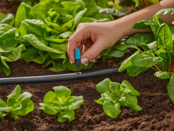 Használd a GARDENA kisterület-fúvókáját kis virágágyások vagy salátákkal és palántákkal beültetett területek öntözéséhez. A növények öntözése előtt a Micro-Drip-System elemek öntözési sugarát egyedileg 10 és 40 cm között állíthatod be. A kisterület-fúvóka egyszerűen telepíthető közvetlenül a 13 mm-es vezetékcsőbe egy szerelő eszközzel, vagy csatlakoztasd T-elemmel. A szórófej intuitív dizájnja megmutatja az esőztetési formát, ami egyértelműen megkülönbözteti a GARDENA fúvókákat egymástól. Ha a fúvóka eldugul, a mellékelt tisztítótűvel könnyen megszüntetheted a dugulást. Micro-Drip-System. A kertöntözés víztakarékos módja. Egyszerű, pontos, víz- és időtakarékos öntözés.