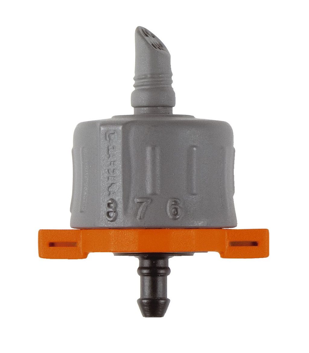 A GARDENA Micro-Drip-System részét képező szabályozható nyomáskiegyenlítős végcsepegtető ideális a különálló növények vagy eltérő vízigényű növényekből álló hosszabb sorok pontszerű öntözésére. A szükséges vízmennyiség a csepegtető mennyiségskálája segítségével állítható be, 1-8 liter/óra tartományban. A csepegtető nyomáskiegyenlítése (1-4 bar) biztosítja az egyenletes vízelosztást - függetlenül a víznyomástól. Az öntisztuló membrán- és labirintustechnológiának köszönhetően garantált a hosszú távú, megbízható működés. Különálló növények öntözéséhez a végcsepegtetőt egy elosztócső (3/16") végébe kell belecsavarni. A 13 mm-es (1/2") vezetékcső a szerelőeszköz (cikkszám: 8322-20) segítségével kilyukasztható; ebbe a lyukba kell beilleszteni a végcsepegtetőt. A csomag öt végcsepegtetőt tartalmaz.