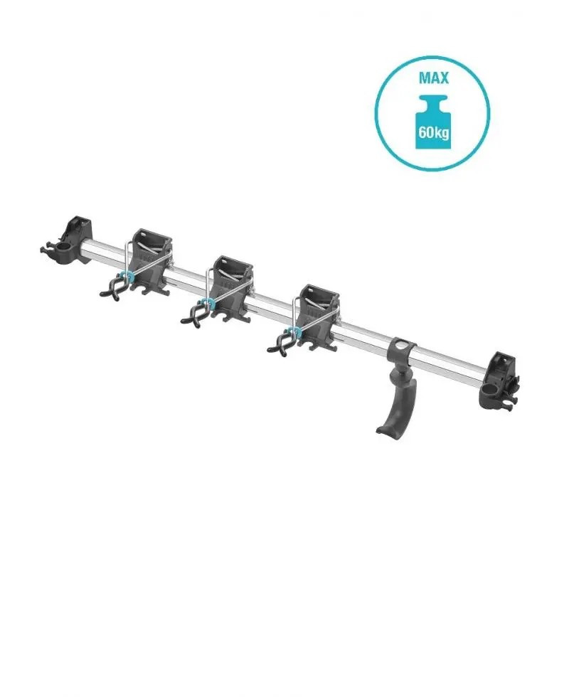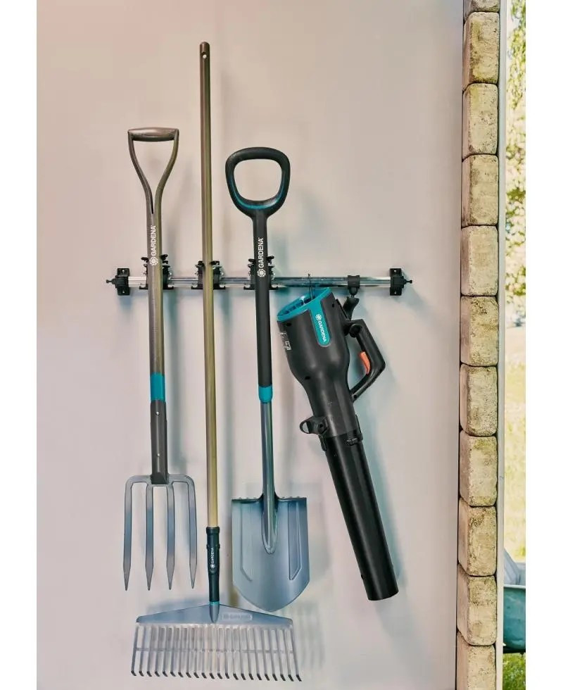 A GARDENA Plus Szerszámtartó segít a kerti szerszámok helytakarékos tárolásában. Ideális nehéz kerti szerszámok, például ásók és villák, valamint a GARDENA combisystem termékek és egydarabos nagyméretű szerszámok tárolására. Az állvány alumíniumból készült, és meggyőző a 60 kg-os teherbírása. A három tartóval egyenként akár 10 kg súlyú szerszámokat is tárolhatsz. A nagyobb rugalmasság érdekében a tartók a combisystem tartozékok és az Original GARDENA System eszközök tárolására is használhatók. Az univerzális kampón például a sövénynyíró vagy a széles markolattal rendelkező lombfújó tárolható. A kampó maximum 5 kg súlyt bír el. A zárható fali tartónak köszönhetően az alumínium rúd visszahúzható, és a szerszámtartó bővíthető, így több szerszámot tárolhatsz.