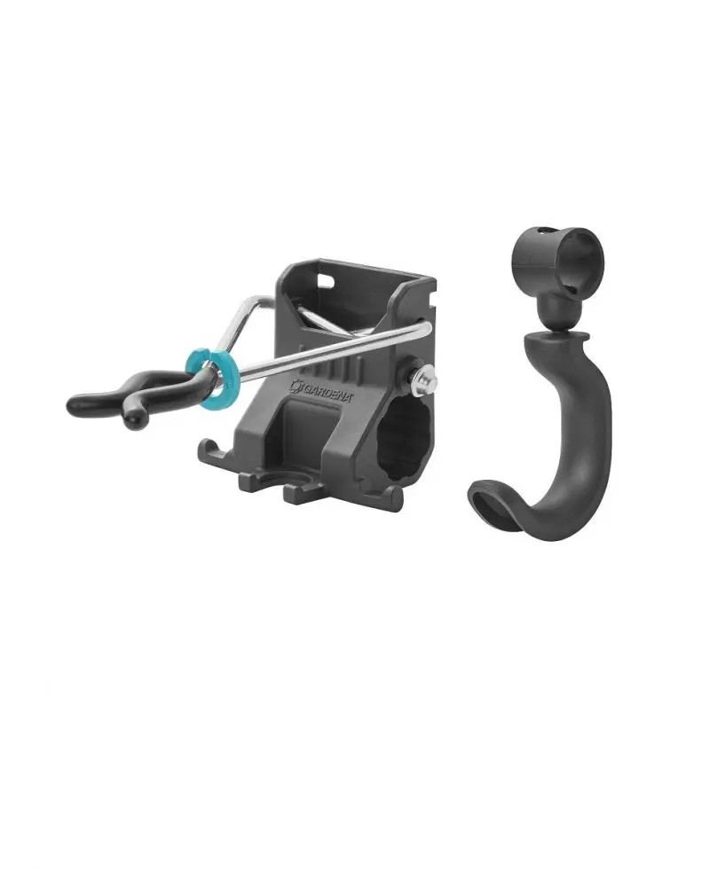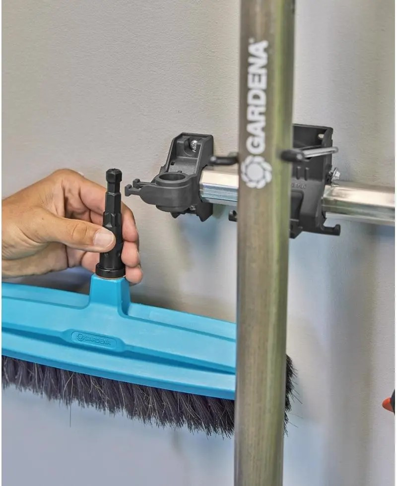 A GARDENA Pót tartó és kampó készlettel könnyedén és rugalmasan bővítheted nehéz kerti szerszámainak tárolóját. A készlet tartalmaz egy tartót és egy univerzális kampót. A tartó stabilan tartja a nehéz kerti szerszámokat, például ásókat vagy villákat, amelyek súlya akár 10 kg is lehet. A nagyobb rugalmasság érdekében a tartók a combisystem és az Original GARDENA System eszközök tárolására is használhatók. Az univerzális kampón max. 5 kg-ig tárolható sövénynyíró vagy széles markolattal rendelkező lombfújó. A zárható fali tartónak köszönhetően az alumínium rúd visszahúzható, és a szerszámtartó további tartókkal és kampókkal bővíthető, így több szerszámot tárolhatsz. A Pót tartó és kampó készlettel kombinálva a Plus szerszámtartó (cikkszám: 3509-20) hatékonyan bővíti a tárolórendszert.