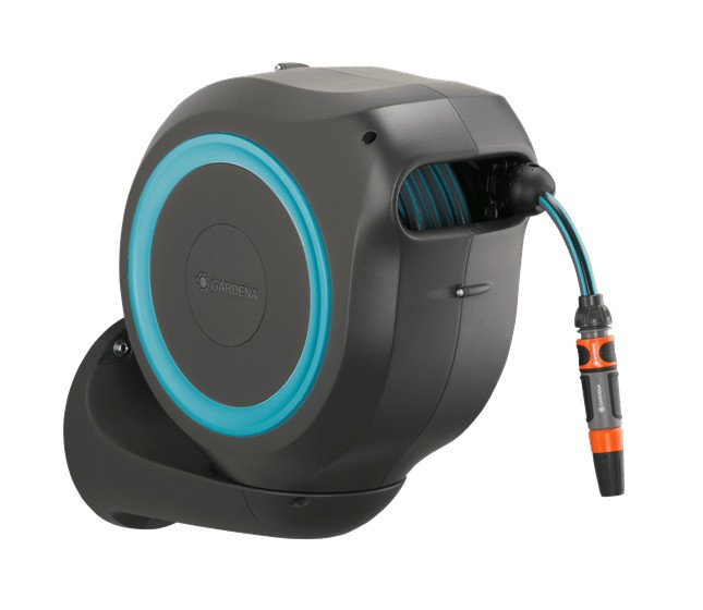 A GARDENA RollUp M fali tömlődoboz segítségével bármikor készen állsz az öntözésre. Ha kerted öntözéséhez ezt a megoldást választod, erőt, időt és helyet takaríthatsz meg. Ez a kompakt tömlődoboz a ház falához van rögzítve, és a tömlő biztonságos tárolása mellett, öntözés után megkönnyíti a tömlő feltekerését is. A több mint 180°-ban elforgatható fali konzolnak köszönhetően az öntözés során nagy mozgásszabadságot élvezhetsz, és a tömlő sem törik meg. Egyszerűen húzd ki a 20 méteres tömlőt a kívánt hosszúságra, és máris kezdheted az öntözést! A beépített rövid rögzülési pontoknál bárhol megállítható a tömlő, így növényeidet nagyon könnyen megöntözheted. A letekert tömlő végének rövid megrántásával aktiválhatod a reteszelő mechanizmust, és a beépített acélrugó automatikusan és megbízhatóan visszahúzza a tömlőt. Arról, hogy a tömlődob környezete és a tömlődoboz mindeközben ne sérüljön meg, az innovatív RollControl technológia gondoskodik, amely rendkívül biztonságosan tekercseli vissza a tömlőt. A beépített tömlővezető pedig megakadályozza, hogy a tömlő megcsavarodjon vagy megtörjön. Az Original GARDENA rendszerű csatlakozóelemekkel rugalmasan meghosszabbíthatod a tömlőt, vagy egyéb GARDENA öntözési kiegészítőket is csatlakoztathatsz hozzá. A GARDENA tömlőkiegészítői mindig kéznél vannak, ugyanis a fali konzolon kényelmesen és helytakarékosan elhelyezhetők. A fali tömlődoboz természetesen kiváló minőségű anyagokból készül, UV- és fagyálló, melynek köszönhetően a robusztus tömlődoboz egész évben használható. Továbbá a lopásvédelemnek köszönhetően ellopni sem lehet, csak tulajdonosa tudja leszerelni a falról. A fali tömlődoboz tartozékai a következők: 20 m hosszú tömlő, fali konzol, rugalmas csatlakozótömlő, valamennyi szükséges Original GARDENA rendszerű csatlakozóelem, valamint egy locsoló két különböző szórófejjel. A GARDENA 5 év garanciát vállal erre a minőségi termékre.