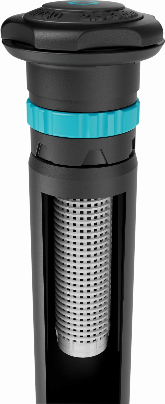 A GARDENA Süllyesztett esőztető MD40/300 automatikusan öntöz a magasabb növények felett. A GARDENA Sprinklersystem részeként az esőztető lenyűgöző, 30 cm-es magassággal rendelkezik, így még a magasabb növények felett is könnyedén átöntözhetsz. A praktikus föld , alatti rendszer biztosítja, hogy az esőztető szinte láthatatlan legyen a kertben. A süllyesztett esőztető optimális vízelosztást biztosít függetlenül a hatótávolságtól és a beöntözött felülettől. Ezzel vizet takaríthatsz meg. A hatótávolság 2,5 és 3,5 m között, az öntözési szektor pedig 80 és 360° között állítható – az ergonomikus kialakításnak köszönhetően ehhez nincs szükség szerszámra. A szórófej csökkentett vízáramlása lehetővé teszi a jobb vízfelvételt és megakadályozza a pazarlást. Az esőztető egyenletes szórásképet biztosít az egész öntözési területen. Az esőztető oldalán két különböző menet található, így a telepítés mélysége változtatható. 3/4" külső menettel rendelkezik, és a GARDENA „Klikk és kész” csatlakozókkal összeköthető a vezetékcsővel. A praktikus kettős süllyesztett rendszer kívülről védi az esőztetőt szennyeződéstől. A beépített szűrő hatékonyan védi a süllyesztett esőztetőt a szennyeződésektől. A Süllyesztett esőztető MD40 kompatibilis a GARDENA Sprinklersystem összes termékével. Mivel a szórófej vízhozama megegyezik a GARDENA T100, T200 és T380 esőztetőkével, az esőztetők egy öntözési zónában kombinálhatók. A Sprinklersystem érti, mire van szüksége a gyepnek. Megbízható, víztakarékos gyepöntözés.