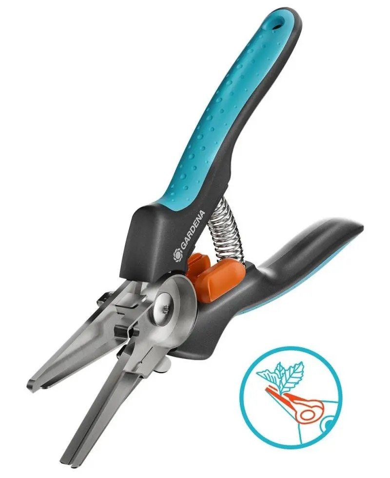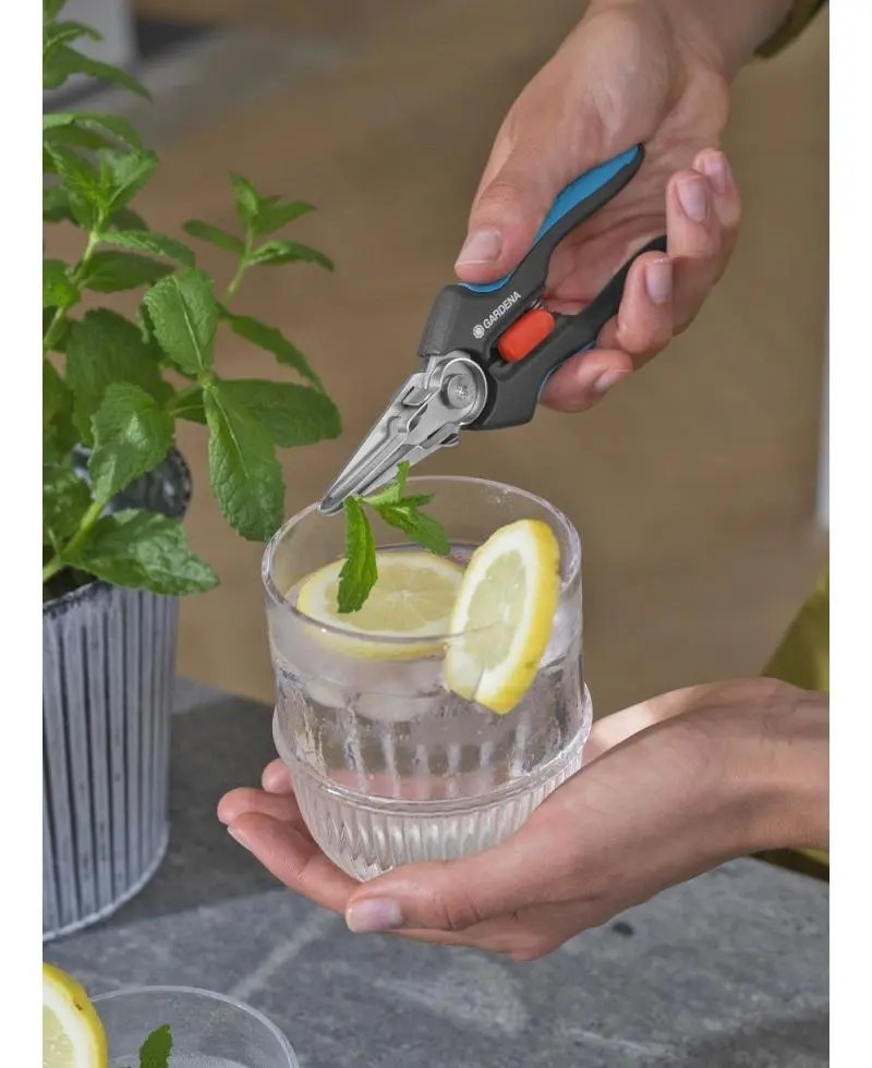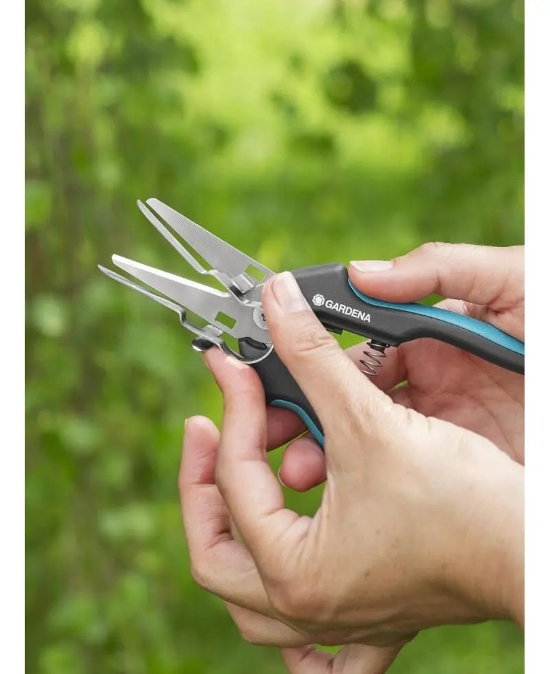 A GARDENA GripCut fogóval van felszerelve, és a beépített tartó funkciónak köszönhetően egy kézzel egyszerre vághatsz és tarthatsz. A GripCut sokoldalúsága rendkívül hasznos: Darabolj fel friss fűszernövényeket, például egy szál petrezselymet vagy metélőhagymát, és egyúttal tartsd is meg őket. Különösen a chilipaprikák betakarítását könnyíti meg, mert nem kerül csípős lé az ujjaidra. Nem fogod leejteni a termést, ráadásul az egyik kezed szabad, hogy megfogd a tálat vagy a szűrőt, ami azt jelenti, hogy többé nem kell lehajolnod, hogy a földön lévő edénybe tedd a dolgokat. Vágáskor a kiváló minőségű és tartós rozsdamentes acél vágóélek nagyon meggyőzőek. Az éles olló tisztán és pontosan vág egészen a hegyéig. Az ergonomikus, puha alkatrészekkel ellátott ErgoTec markolatoknak köszönhetően a szüretelő olló tökéletesen illik a kézbe és csúszásmentes. Az egykezes zárral a GripCut biztonságosan lezárható a tároláshoz. A vágóélek élelmiszer-biztosak, ami azt jelenti, hogy nem bocsátanak ki semmilyen ízt vagy szagot. A könnyű tisztítás érdekében egyszerűen szereld szét először a fogót, majd tedd a mosogatógépbe a szüretelő ollóval együtt.