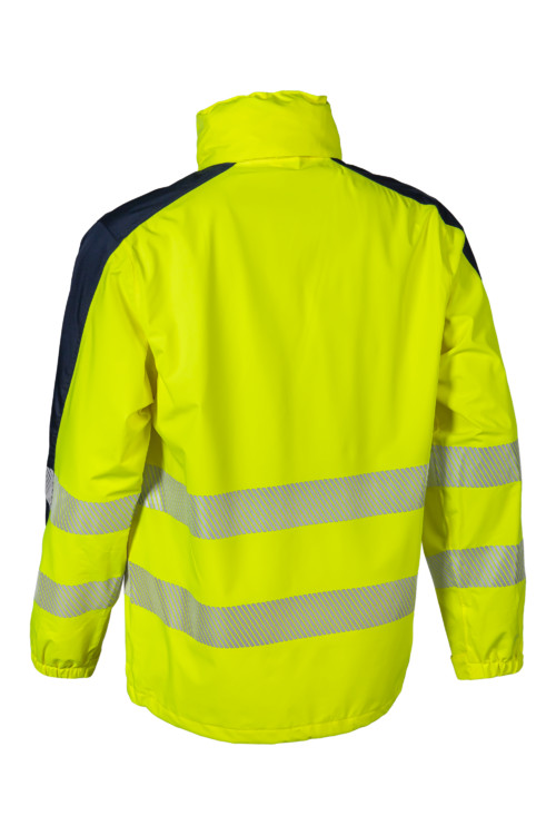* 100 g/m2 vastag 2 rétegű Softshell alapanyag: 100% mechanikus stretch poliészter + TPU membrán, 100% poliészter hálós bélés a testen ás a karokon és 55 g/m2 vastag 100% poliészter tafeta bélés a kapucniban és a zsebeknél* 5 cm széles szegmentált fényvisszaverő csík: 2 a test körül, 2 a karon, álló gallér végéig futó, tépőzárral, fedett cipzár* az alapanyag vízállósága: 8000 mm, páraáteresztő képessége: 5000 g/m2/24h* hegesztett varrások, a gallérban rejtett, tépőzárral állítható vihar kapucni* szitázható, karcsúsított szabású kabát * gumírozott és tépőzárral állítható mandzsetta és zsinórral állítható aljrész * kontraszt betétek a vállon és a karon, illetve a felső zsebnél * 1 függőleges cipzáras felső zseb2 cipzáros fedett oldal zseb 1 cipzáras belső zseb1 cipzáras zseb az ujjon