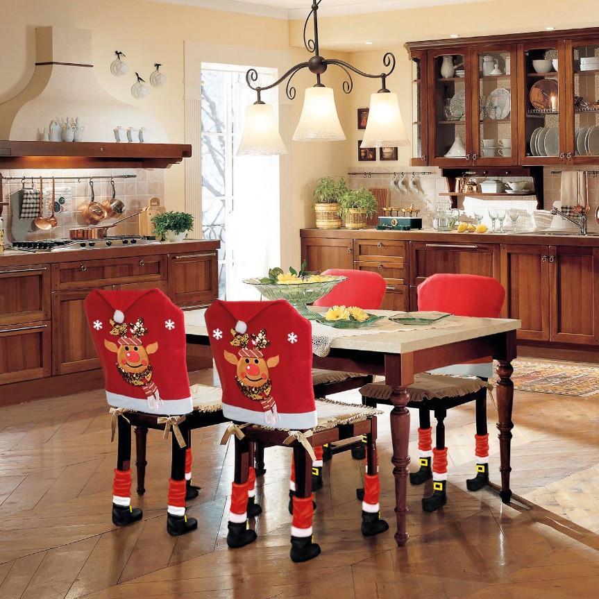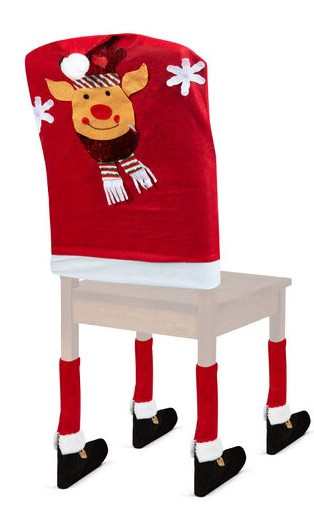 Karácsonyi székdekor lábbal-rénszarvas 50 x 60 cm - piros/fehér
