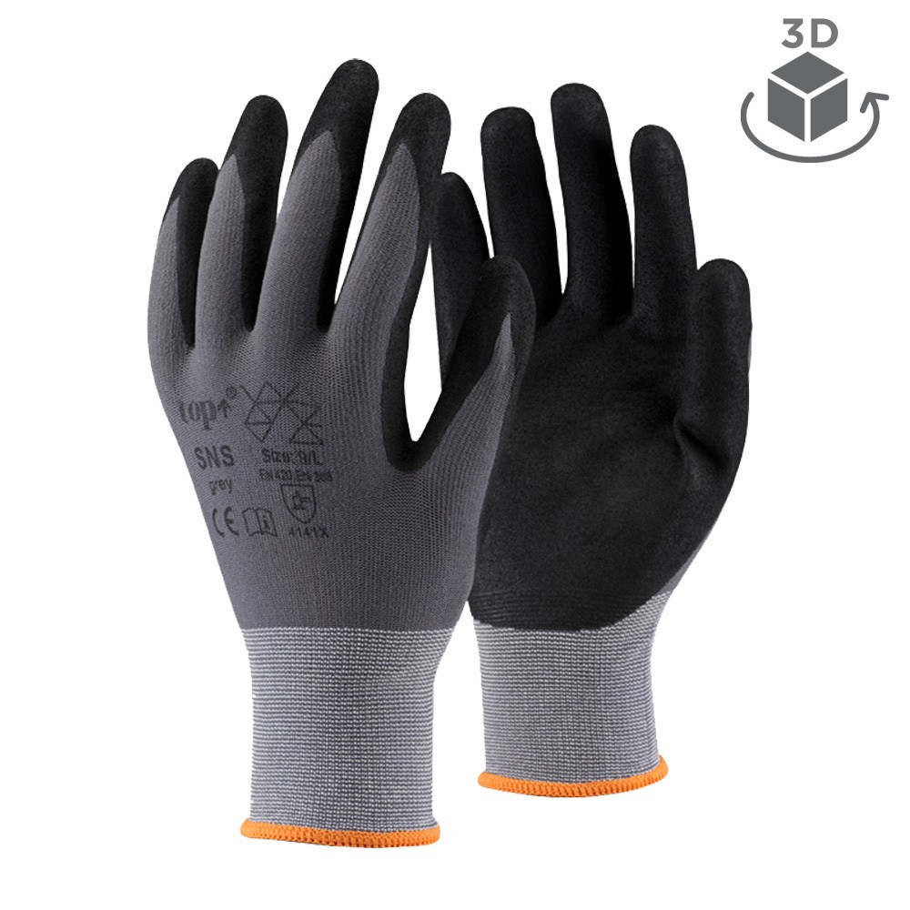 TOP SNS homokszemcsés nitril habba ujjvégig mártott védőkesztyű – megbízható fogásbiztonság és kényelmes viselet