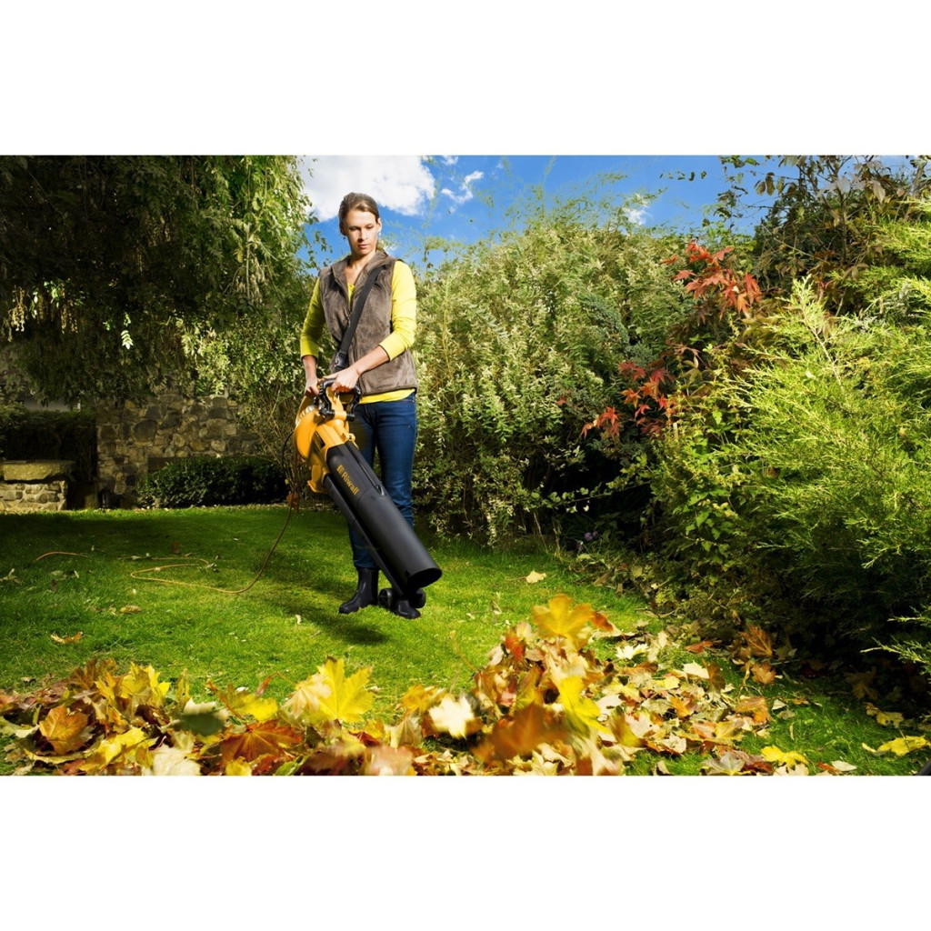 Motor: 230 V / 50 Hz Teljesítmény: 3 000 W Aprítási arány: 12:1 Súly: kb. 6 kg • Extra erős 3000 W-os motor • 2 funkció - lombfúvás és lombszívás a gyűjtőzsákbán • Könnyű kezelhetőség a kis súlya miatt • Hatékony mulcsolás a lomb terjedelmének csökkentésére a gyűjtőzsákban • A tartós műanyag lapátok felaprítják a lombot 12:1 arányban • A teleszkópos szívócső könnyű tárolást, szállítást és ideális munkapozíció beállítást tesz lehetővé a felhasználó igénye szerint • A szívási és fújási funkció könnyen átállítható egy kapcsoló segítségével • Kerekes támaszték a gép könnyű kezelhetőségéhez • Terjedelmes gyűjtőzsák nagy nyílással a hulladék könnyű kiürítéséhez • Vállpánt • Biztonságos kábelmegfogó a vezeték sérülésének megelőzéséhez Csomagolási méret: 42 x 32 x 51 cm
