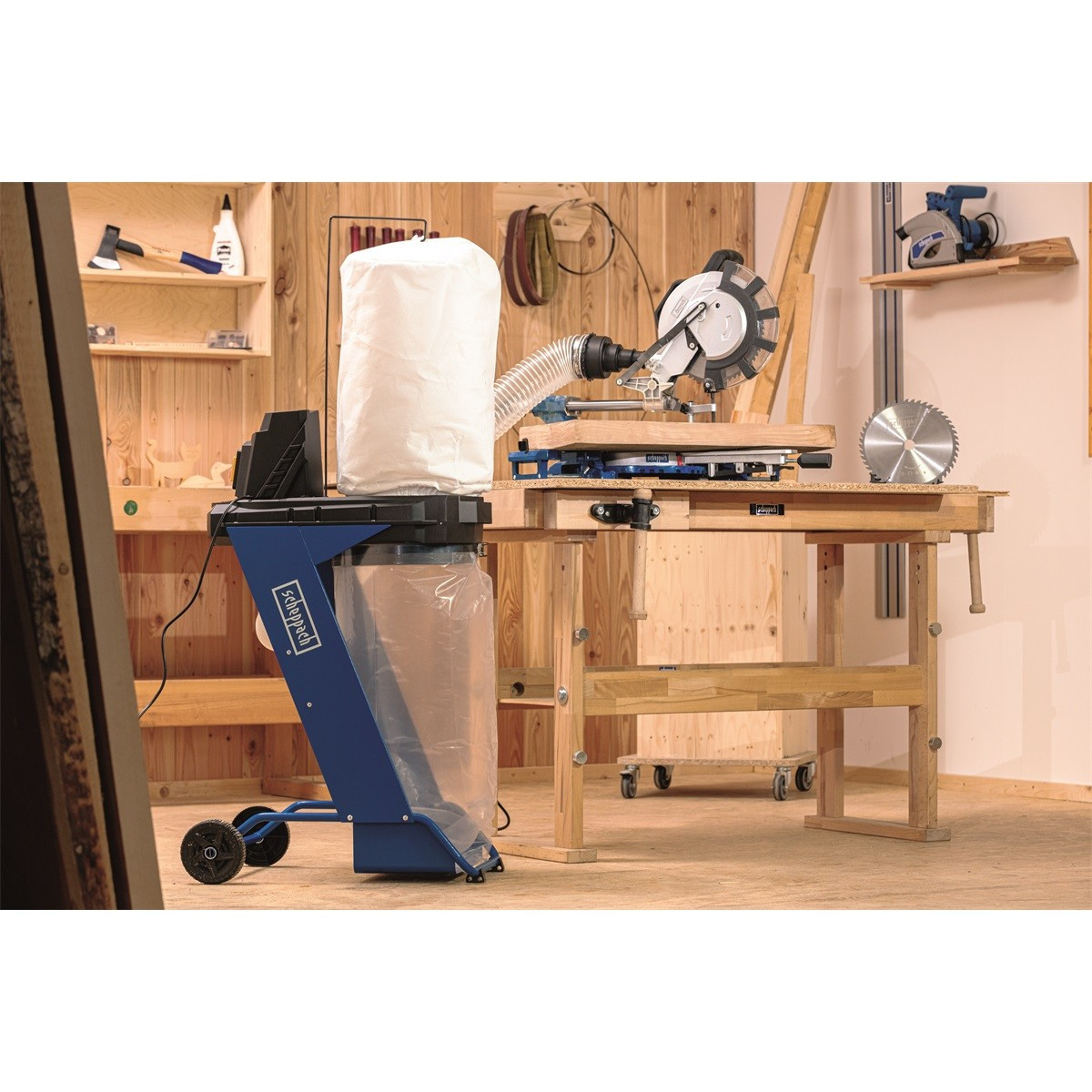A fával történő munkálatok során szükséges egy hatékony elszívó használata, mely megvédi Önt és a gépeit a kellemetlen portól. Így tisztán tarthatja a műhelyét, kényelmesen dolgozhat és a por sem fogja veszélyeztetni az egészségét. A Scheppach DC 500 ehhez nyújt ideális megoldást! Jellemzői a kompakt dizájn, nagy teljesítményű, 550 W-os motor, minőségi gyűjtőzsák, nagy, 75 literes kapacitással és kiváló minőségű szűrőfunkció. A könnyebb szállíthatóságot kerekek segítik. Ingyenesen a gép tartozéka a 4-részes csatlakozó adapter, mellyel különböző gépekhez csatlakoztathatja az elszívót. Motor: 230 V/50 Hz Teljesítmény: 550 W Légteljesítmény: 1150 m3/h Vákuum: 900 Pa Gyűjtőzsák kapacitás: 75 l Gégecső hossza: 2000 mm Gégecső átmérője: 100 mm Méretek: 650 x 446 x 1430 mm Csomagolási méret: 46 x 42 x 76 164 Súly: 14 kg