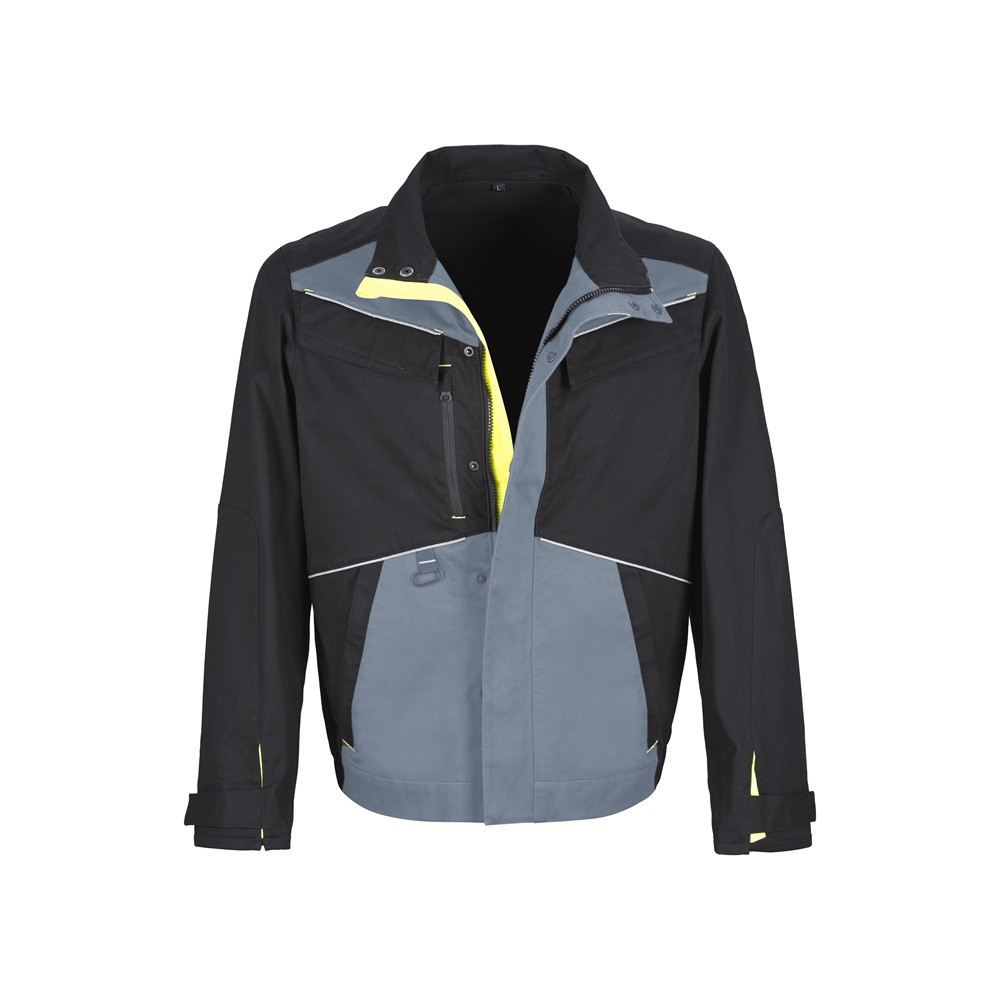 A TOP PHOENIX CO2D J munkakabát a modern munkaruha divatot követi, ötvözve a funkcionalitást és kényelmet. A 97% pamut és 3% spandex összetételű, 250 g/m2 súlyú anyag kivételes rugalmasságot és strapabíróságot biztosít, amely ideális az aktív, egész napos munkavégzéshez.