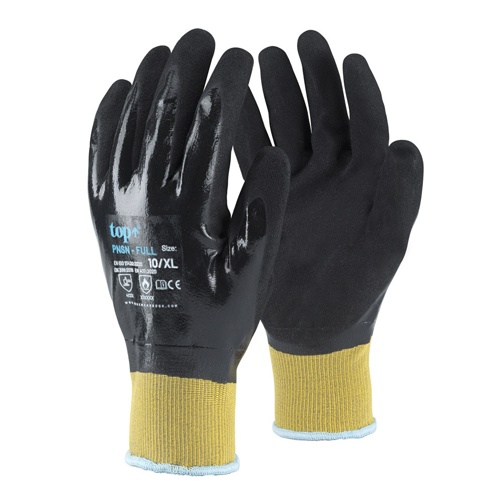 A TOP PNSN-FULL védőkesztyű megbízható vízálló nitril munkavédelmi kesztyű, amely kiváló választás ipari és karbantartási munkákhoz.