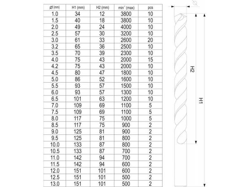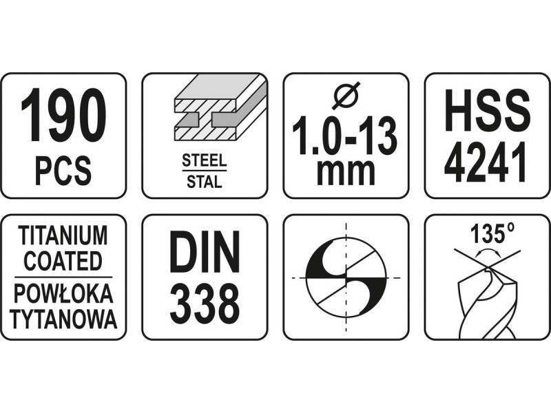 YATO Csigafúró készlet 190 részes 1-13 mm HSS-TiN