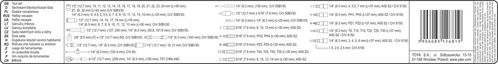 Professzionális szerszámkészlet, amelyet különleges autó- és gépi szervizigényekre fejlesztettek ki. A fogaskulcsokat és a rögzítők meghajtóit tartós CRV 50BV3 króm-vanádium acélból készítették. A rögzítők AS-Drive rendszerrel vannak felszerelve, amely 25%-kal növeli a maximális nyomatékot, teljes védelmet biztosítva a sapkák vágója számára, kéttónusú felületkialakítással. A rögzítőket a matrix módszerrel készítették, és a keményítési folyamat előtt precíz illesztésekkel és ellenőrző eszközökkel kalibrálták. A készlet lehetővé teszi a nagy terhelést és pontosságot igénylő munkát, lehetővé teszi a különböző névleges méretű menetes kötések unscrewing és csavarozásával kapcsolatos számos szerviztevékenység elvégzését. Felhasználási figyelmeztetések: Figyelem! Munka közben mindig használjon személyes biztonsági felszerelést.