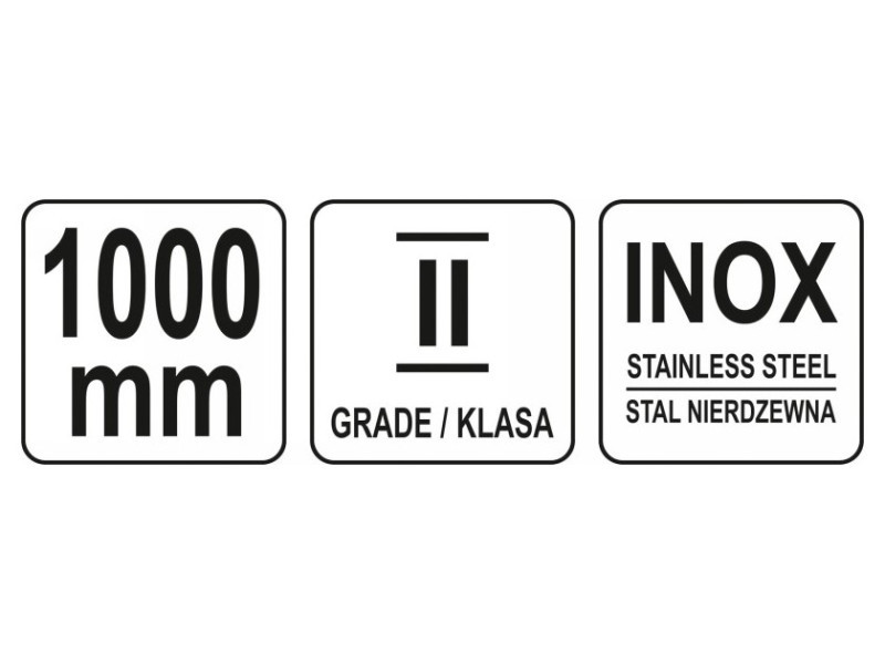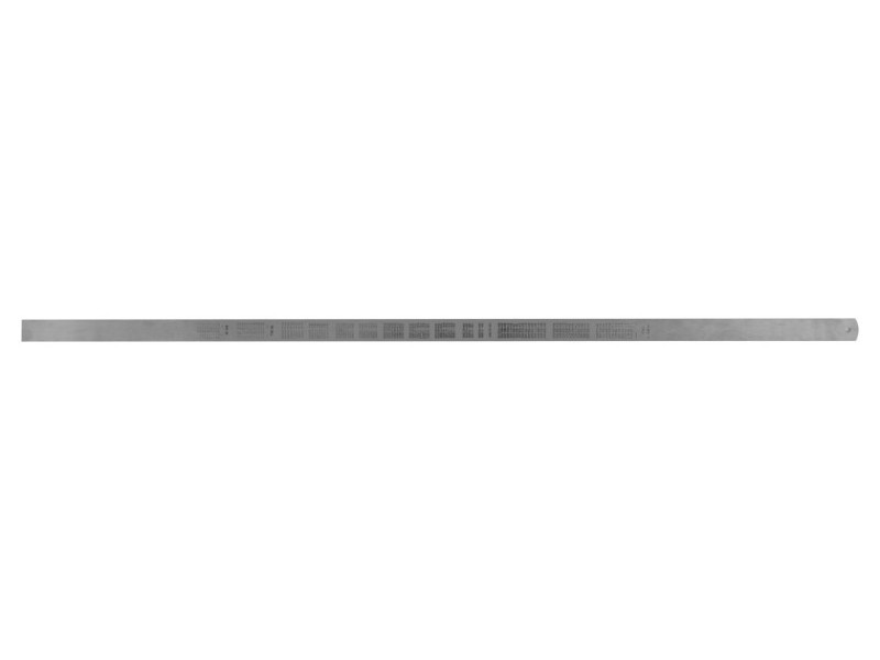 II. osztályú pontosságú rugalmas vonalzó. Rozsdamentes acélból készült. Mindkét szélén állandóan alkalmazott milliméteres skála. Szélessége 28 mm, teljes hossza 1029 mm, vastagsága 1,3 mm, a hátoldalán menetértékek átváltó táblázatai. Precíz mérésekhez és jelöléshez lakatos-, mechanikai-, dekoratív munkákban, stb.Rozsdamentes acél mérővonalzó 1000 mm Rugalmas vonalzó II. osztályú pontosság Rozsdamentes acélból készült mindkét szélén állandóan alkalmazott milliméteres skálaszélessége 28 mm teljes hossza 1029 mm. vastagsága 1.3 mm a hátoldalán menetértékek átváltó táblázatai. Precíz mérésekhez és jelöléshez lakatos-, mechanikai-, dekoratív munkákban, stb.