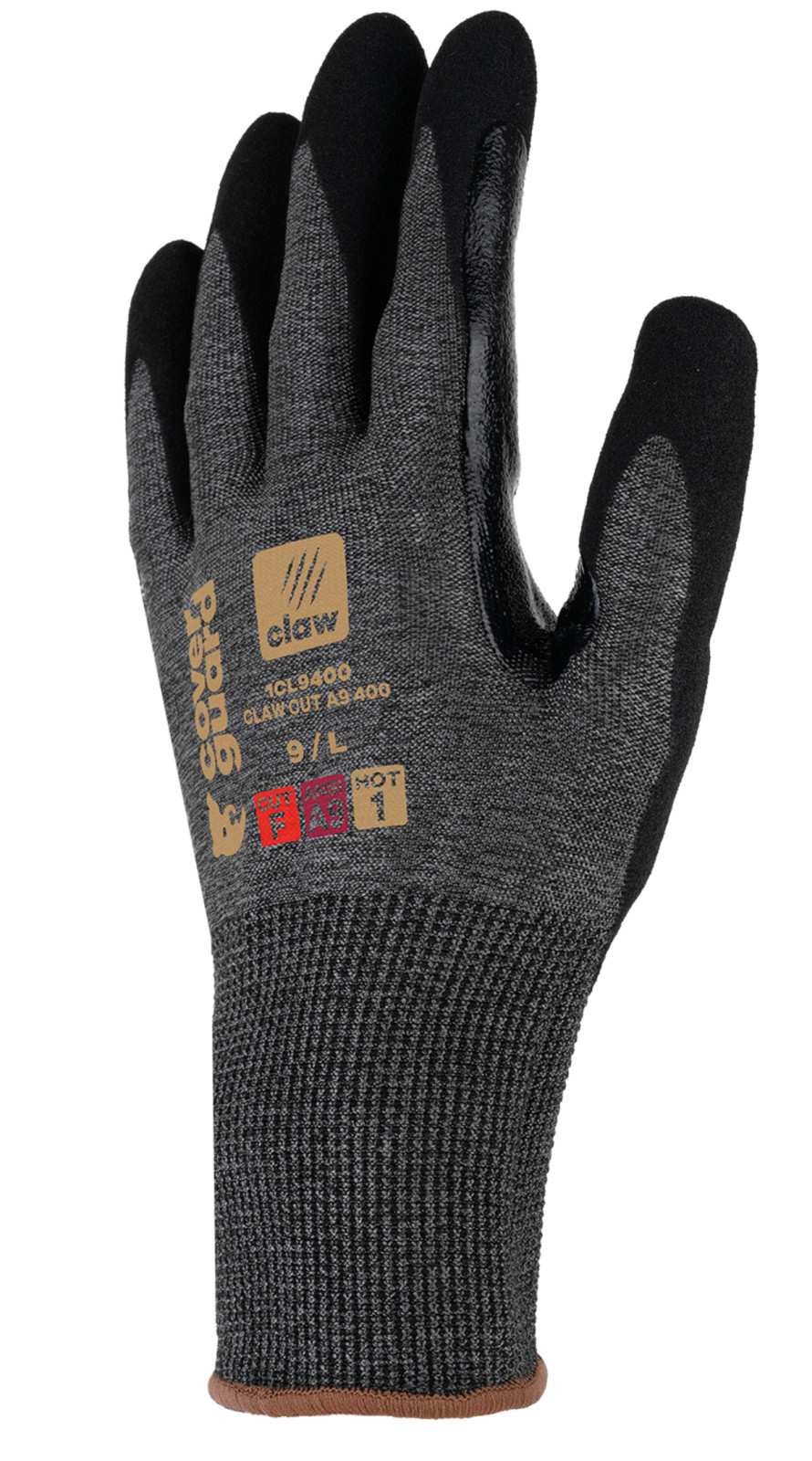 A CLAW CUT termékcsalád egy új generációs vágásálló kesztyű, amelyet azért hoztak létre, hogy megvédjen a legigényesebb munkák során, magas teljesítményszintek (CUT D-től A9-ig) vágásállósággal, és kiváló komfortot, valamint kivételes ügyességet biztosítson minden munkakörnyezetben (száraz, nedves és olajos).A CLAW CUT A9 400 valódi forradalom a vágások elleni védelem terén, a világ legmagasabb vágásállósági szintjével (CUT A9, az AINSI szabvány szerint). Ez a kesztyű finom anyagmozgatási munkákhoz készült száraz és enyhén olajos környezetben. A magas 18-as kötés, párosítva egy rendkívül puha és erős üvegszál, poliészter, acél és spandex alapú szálból készült anyaggal, kivételes komfortot nyújt, miközben rendkívüli teljesítményt biztosít.A sandy nitril bevonat és a hosszú megerősítés a hüvelykujj és a mutatóujj között kiváló tapadást és jó fogást biztosít. Ez a bevonat nagyon jó légáteresztőséget garantál (COVERPERF címke alatt tesztelve).A CLAW CUT A9 400 újrahasznosított poliészterből készült, és RCS tanúsítvánnyal rendelkezik (a termék teljes súlyának 16%-a). Üvegszál nélkül.Ez a kesztyű érintőképernyő kompatibilis, így viselése közben is használhatja a képernyős eszközöket. Sanitized kezelés: megakadályozza a baktériumok és szagok fejlődését,