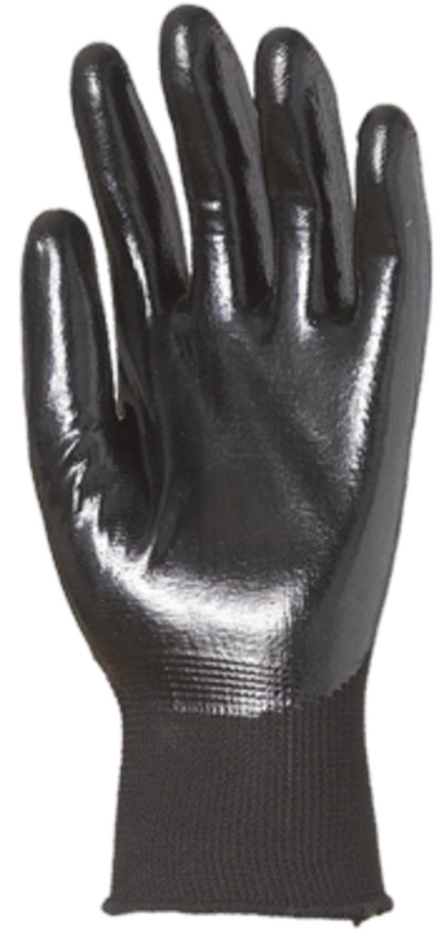 * fekete, kiválóan kézre illeszkedő, 15-as kötésű, poliészter alapkesztyű * tenyerén és a kézháton ökölcsontig fekete nitrillel mártott * gumírozott, rugalmas mandzsetta, szellőző kézhát