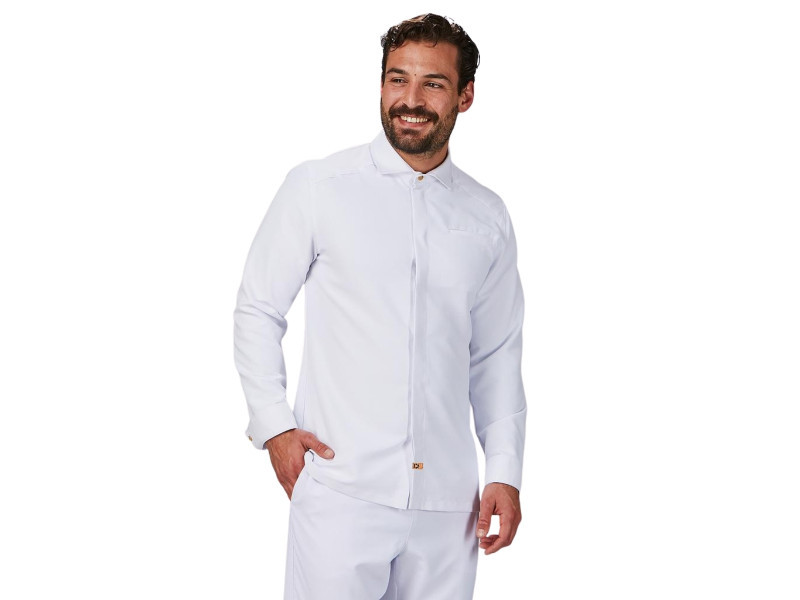 GARYS TOMMASO férfi séfkabát olasz gallérralA GARYS TOMMASO férfi séfkabát test vonalához igazodó fazonnal és elegáns olasz gallérral készül, elöl 6 rejtett patentos gombbal, a gallérnál pedig fa gomb díszítéssel, hogy elegáns, profi megjelenést adjon a konyhában.Főbb jellemzők:Férfi, testhez igazodó szabás a kényelmes, rendezett illeszkedésértOlasz gallér a kifinomult megjelenéshez6 db rejtett patent elöl + fa gomb a gallérnál a biztos, igényes záródásértAIR DRY szellőző betét hátul a jobb légáteresztésért és hőkomfortértVállpánt és oldalsó varrások a kényelmesebb illeszkedéshezMellzseb és bal ujjon zseb a praktikus tároláshozAnyag: újrahasznosított mikroszál 54% RPET / 46% poliészter, 145 g/m2Könnyű, tartós, gyorsan száradó és könnyen kezelhető kivitelSzín: fekete és fehérHossz: kb. 75 cmKezelés: max. 40°C mosás, fehérítés tilos, vegytisztítás (P) lehetséges, max. 150°C vasalás, szárítógépben nem száríthatóJó választás, ha olyan férfi séfkabátot keresel, ami jól szellőzik és gyorsan szárad, közben pedig az olasz gallér és a rejtett záródás miatt igazán igényes, egységes megjelenést ad a pörgős műszakokban is.