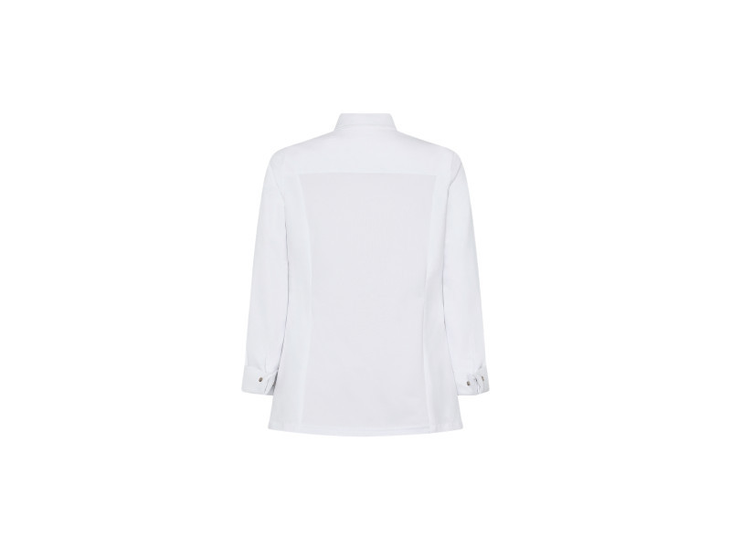 GARYS MORAL női séfkabát olasz gallérralA GARYS MORAL női séfkabát testhez álló fazonban, olasz gallérral készül, ahol az első gomb látható, a többi pedig rejtett, így csinos, mégis profi megjelenést ad, miközben a felhajtható mandzsetta és a váll-/illesztő varrások kényelmes viseletet biztosítanak.Főbb jellemzők:Női, test vonalát követő szabás a csinos, rendezett megjelenésértOlasz gallér – az első gomb látható, a többi rejtettFelhajtható mandzsetta a praktikus munkavégzéshezStrukturált váll- és illesztő varrások a kényelmesebb, formakövető illeszkedésértÚjrahasznosított mikroszálas anyag: 54% RPET / 46% poliészter, 145 g/m2Könnyű, légáteresztő, gyorsan száradó kivitelAIR DRY szellőző rendszer hátul a komfortértMellzseb és ujjzseb a kéznél lévő eszközöknekSzín: fekete és fehérHossz: kb. 75 cmKezelés: max. 40°C mosás, fehérítés tilos, vegytisztítás (P) lehetséges, max. 150°C vasalás, szárítógépben nem száríthatóIdeális, ha olyan nőies szabású, jól szellőző séfkabátot keresel, ami könnyű és gyorsan szárad, miközben a rejtett gombok és az olasz gallér igényes, profi megjelenést ad.