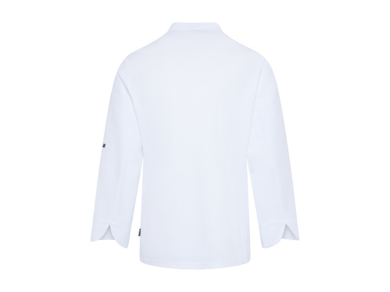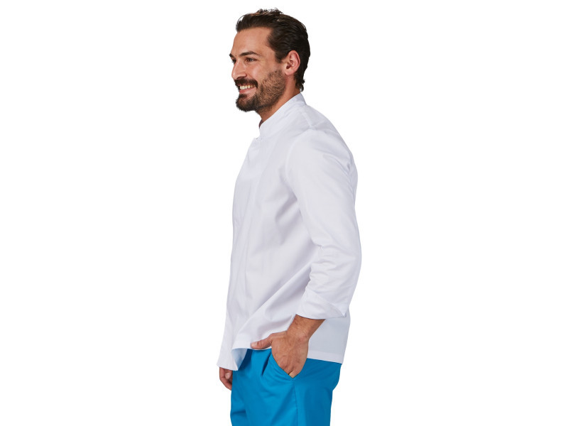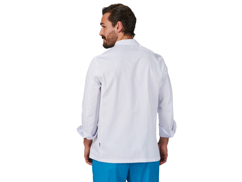 GARYS MEJIA unisex séfkabátA GARYS MEJIA unisex séfkabát strapabíró twill (twill) anyagból készül (65% poliészter / 35% pamut, 200 g/m2), balról jobbra záródó, rejtett patentos elülső résszel és mao gallérral, így hosszú, pörgős műszakokban is kényelmes, mégis elegáns, profi megjelenést ad.Főbb jellemzők:Unisex séfkabát test vonalát követő, kényelmes szabássaltwill (twill) anyag: 65% PES / 35% CO, 200 g/m2 a tartós használathozBalról jobbra záródó, rejtett patentos elülső rész a letisztult megjelenésértMao gallér az elegáns, profi összhatásértKönyökrésznél kialakított varrás a nagyobb mozgásszabadságértAEROSILVER betét hátul a jobb szellőzésért és komfortértOldalsó varrások a jobb illeszkedéshezBal ujjon 1 zseb a kéznél lévő apróságoknakSzín: fekete vagy fehérHossz: kb. 74 cmKezelés: max. 40°C mosás, fehérítés tilos, vegytisztítás (P) lehetséges, max. 150°C vasalás, szárítógépben nem száríthatóJó választás, ha olyan letisztult, mao galléros séfkabátot keresel, ami jól szellőzik és kényelmesen mozog veled, miközben a rejtett patentos záródás rendezett, profi megjelenést ad a munkában.