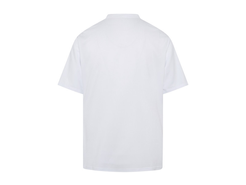 GARYS RIVERA férfi séfkabátA GARYS RIVERA férfi séfkabát rövid ujjú, mao galléros és átlapoltrejtett patentos záródással, így modern, letisztult megjelenést ad, miközben a 100% MICROFIBER anyag és a hátul elhelyezett AEROSILVER betét segít komfortosnak maradni a pörgős konyhai műszakokban is.Főbb jellemzők:Férfi, rövid ujjú séfkabát mao gallérral és átlapolt kialakítássalRejtett patentos záródás a gyors, rendezett használathozAnyag: 100% poliészter MICROFIBER, 148 g/m2Antibakteriális és kiemelten légáteresztő Gyorsan szárad és nem igényel vasalástAEROSILVER betét hátul a jobb szellőzésért és az izzadás csökkentéséértBal ujjon 1 zseb a kéznél lévő apróságoknakFazon: test vonalát követő (H2)Hossz: kb. 73 cmKezelés: 90°C-on mosható, fehérítés tilos, vegytisztítás (P) lehetséges, max. 150°C vasalás, szárítógépben nem száríthatóIdeális, ha olyan rövid ujjú, jól szellőző séfkabátot keresel, ami 90°C-on mosható és gyorsan szárad, miközben a rejtett patentos záródás és a mao gallér letisztult, profi megjelenést ad.