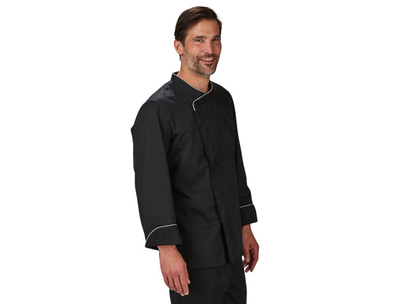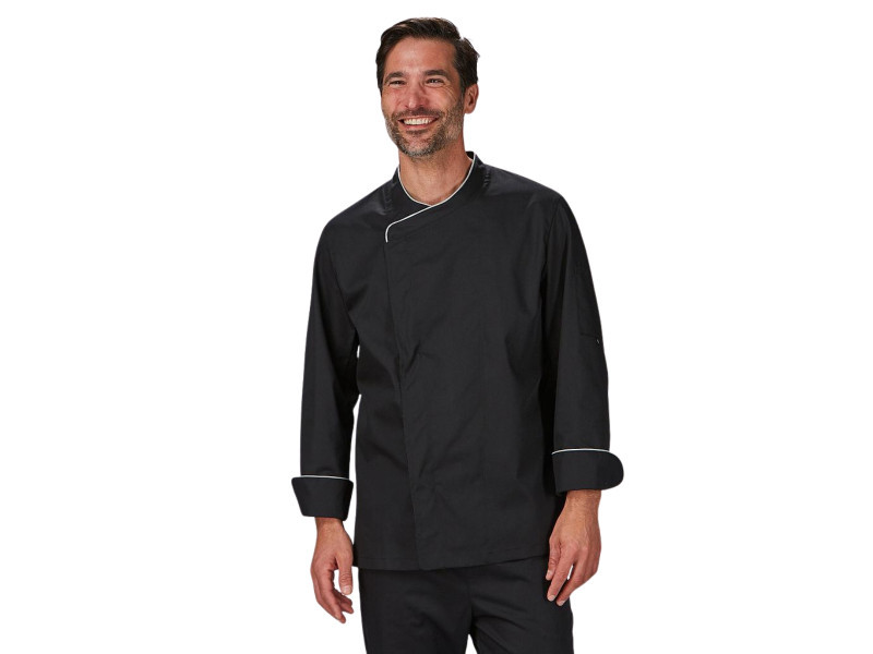 h2>GARYS ABAD férfi séfkabátA GARYS ABAD férfi séfkabát hosszú ujjú, átlapolt fazon rejtett patentos záródással és felhajtható mandzsettával, a kontraszt gallér–mandzsetta kialakítás pedig elegáns, profi megjelenést ad a konyhában, miközben a hátul lévő AEROSILVER betét segít, hogy pörgős műszakban is jól szellőzzön és kényelmes maradjon a kabát.Főbb jellemzők:Férfi, hosszú ujjú, átlapolt séfkabát testhez álló fazonnalRejtett patentos záródás a letisztult, megjelenésértFelhajtható mandzsetta a praktikus munkavégzésértKontraszt gallér–mandzsetta az elegáns, egységes kinézetértBal ujjon 1 zseb a kéznél lévő apróságoknakAEROSILVER betét hátul a jobb szellőzésért és komfortértAnyag: twill (twill) 65% poliészter / 35% pamut, 200 g/m2 a strapabíró használathozSzín: fekete vagy fehérHossz: kb. 73 cmKezelés: max. 40°C-on mosható, fehérítés tilos, vegytisztítás (P) lehetséges, max. 150°C-on vasalható, szárítógépben nem száríthatóIdeális, ha olyan testhez álló, profi séfkabátot keresel, ami jól szellőzik és kényelmes marad a pörgős műszakokban is, miközben a kontrasztos részletek rendezett, elegáns megjelenést adnak.