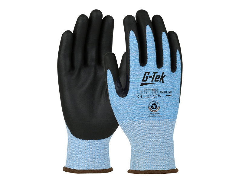 G-TEK 3RX újrahasznosított poliészter/polykor/elasztán, nitrilhab tenyérmártott munkavédelmi kesz