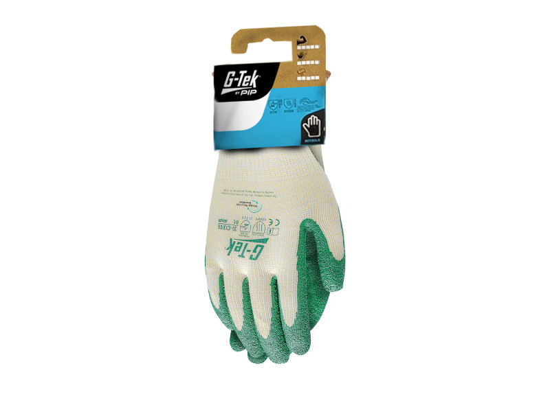 G-TEK újrahasznosított poliészter, latex tenyérmártott munkavédelmi kesztyű - bliszteres