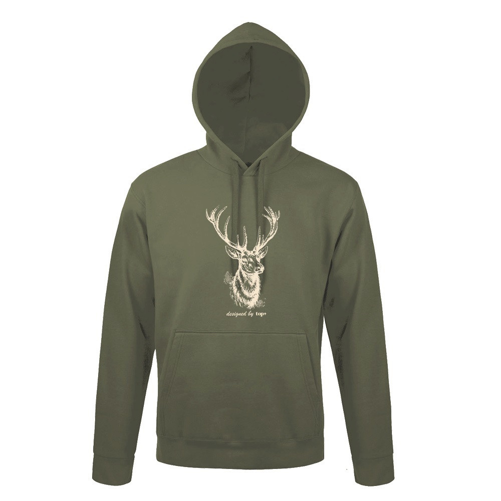 Kapucnis pulóver (szarvas mintával) 50% pamut 50% poliészter, military green, 2XL