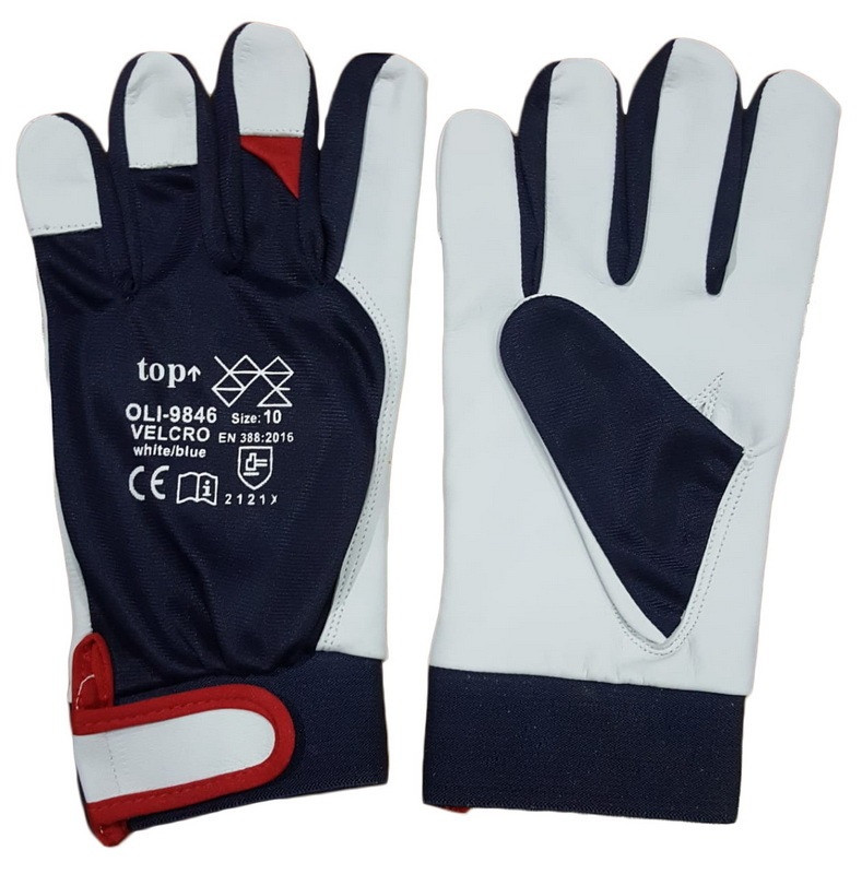 Védőkesztyű báránybőr pamut kézhát TOP LACOV, sötétkék/fehér/piros, 11
