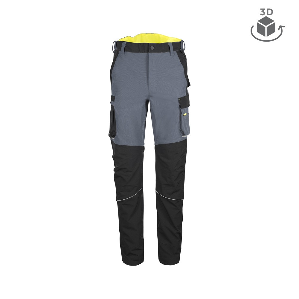 A nadrág rendelkezik állítható derékbőséggel és gumírozott, emelt derékpánttal a stabil tartás érdekében. Az ülepbetét növeli az ergonómiát, míg a megerősített és hosszított térdzseb kényelmes és tartós védelmet nyújt a térdelő munkákhoz.