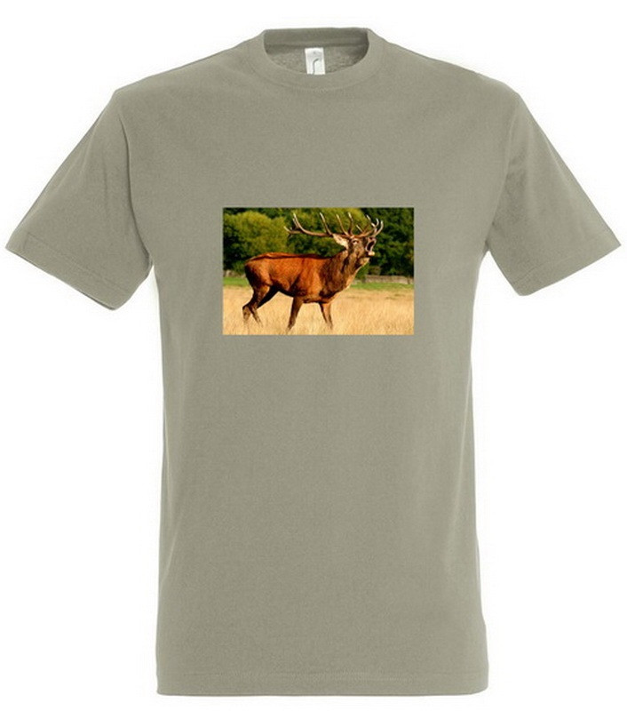 Póló (szarvas fotóval) kereknyakú (100%pamut 190gr/m2) TOP, khaki, XL