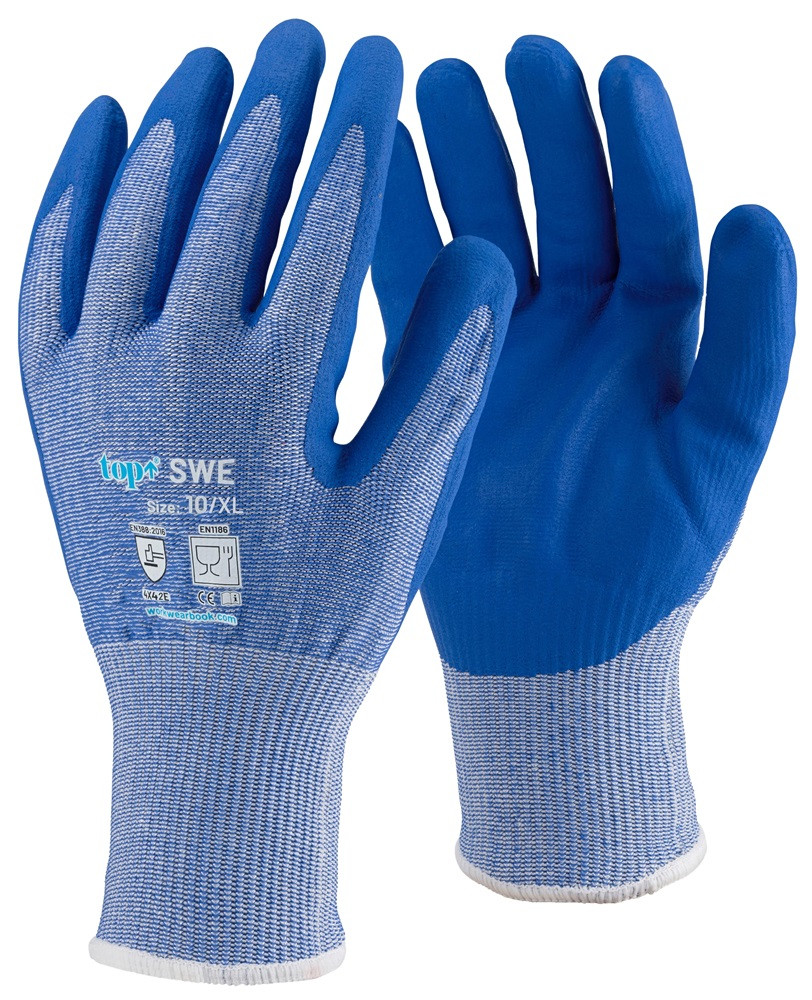 TOP SWE vágásbiztos védőkesztyű, nitril mikrohabos tenyér, kék, 11