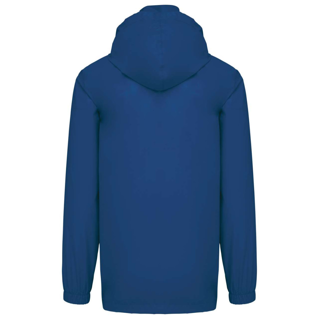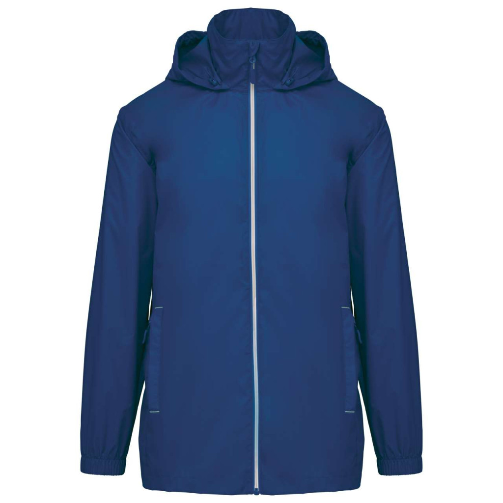 Állítható kapucni a gallérba rejtve, tépőzáras hajtókával